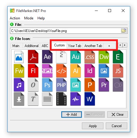 In version 2.0, we've added the ability to add an infinite number of Custom Tabs with Custom Icons. This means that now you can mark files with your own icons downloaded from the Internet.